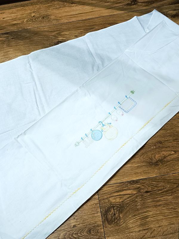 Простынь в идеальном состоянии, для кровати 60×120 см. вышивка всего с одной стороны.