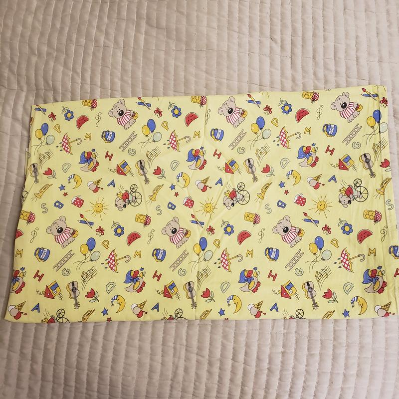 Простыня простынь в детскую кроватку пеленка плотная хлопок Размер 114 на 126 см Состояние очень хорошее, без нюансов. Подойдет и мальчику, и девочке. С веселым принтом. Малышу будет интересно рассматривать яркие картинки на жёлтом фоне.