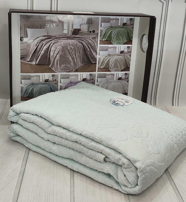 Простынь махровая жаккард евро размер 200 на 220 см cestepe голубая