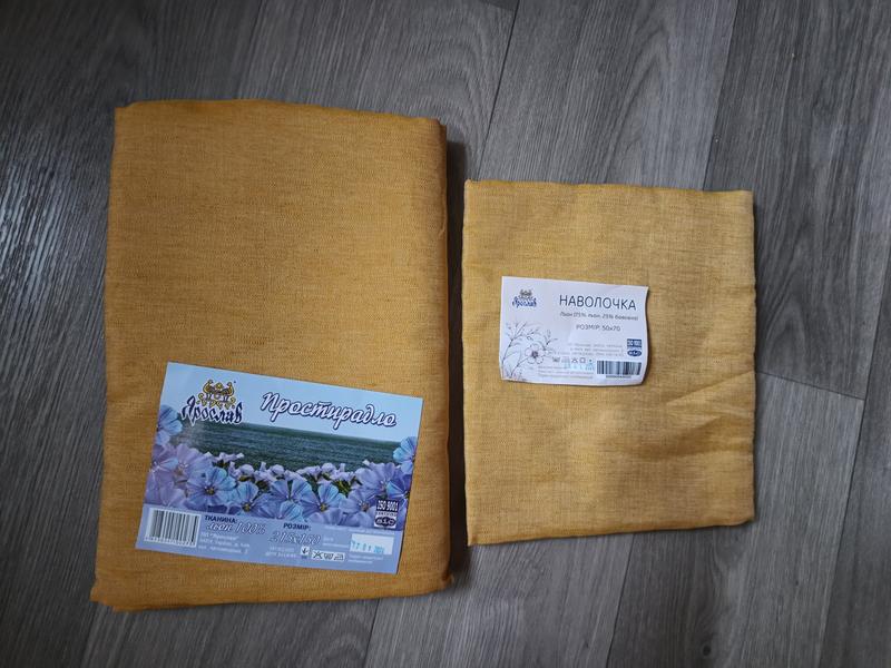 Комплект состоит из простыни 150х215 и 1 шт. наволочка 50х70 см. 1 шт. Льняная простынь имеет лучший терморегуляционный эффект среди всех остальных тканей. Она обладает возможностью в теплое время года понижать температуру на 4-5 градусов, а когда холодно - хорошо хранить тепло. Лен не электризуется, прекрасно "дышит", лучше впитывает влагу и быстрее высыхает, создавая дополнительный охлаждающий эффект. Льняные ткани способствуют интенсивному кровообращению благодаря высокому комфорту, организм меньше утомляется. Лен примерно в 2 раза прочнее хлопка (во влажном состоянии лен становится еще крепче). ОБЩИЕ ХАРАКТЕРИСТИКИ Вид простыни классическая Размер простыни полуторный (215х150 см) Состав 100% лён Тип ткани Лён Плотность 136 г/м2 2. Наволочка полулён ТМ «Ярослав» выполнена из 100% натуральной, экологически чистой ткани, состоящей из 75% льна и 25% хлопка. В ткань вплетены хлопковые нити, что позволяет ей быть более мягче и комфортнее в эксплуатации. Благодаря гигроскопичности волокон льна ткань мгновенно впитывает лишнюю влагу и быстро высыхает. Также постельное белье из натурального льна хорошо пропускает воздух и позволяет Вашей коже дышать и обогащаться кислородом во время сна. Известно, что лен обладает высокой теплопроводностью. Лен способен поддерживать температуру между одеждой и кожей на 4 градуса ниже окружающей среды. Благодаря таким свойствам льняное белье отлично подходит для сна в летнюю жару. Однако, зимой лен, наоборот, способен сохранять температуру тела, тем самым не позволяя замерзнуть. Отсюда следует, что постельное белье из льняной ткани идеально для любого времени года. Лен чрезвычайно прочная ткань, она прочнее хлопка минимум в 3 раза. Изделия из него долговечны и не только не боятся стирок, а даже наоборот, с каждой стиркой льняная одежда или белье становятся еще мягче и приятнее к телу. Льняные волокна являются сильными природными антисептиками, которые угнетают жизнедеятельность болезнетворных микроорганизмов и способствуют быстрому заживлению повреждений кожи. Ткань, состоящая из льняных волокон - гипоаллергенна, поэтому одежда и постельное белье из льна - идеальный вариант для аллергиков и людей, страдающих от астмы. Будьте уверены, сон на белье из натурального льна подарит вам хорошее самочувствие! Приобретая льняное постельное белье, вы делаете правильный выбор, так как она будет радовать вас очень долгое время, достаточно лишь соблюдать простые правила ухода. Рекомендации по уходу: Лен довольно неприхотливый материал, он выдерживает многочисленные стирки и при этом сохраняет свои качества. Тем не менее, есть ряд рекомендаций при уходе за ним, которые все же стоит выполнять. Перед стиркой рекомендуется выворачивать постельное белье из льна наизнанку, застегнув все застежки. И что особенно важно - соблюдайте температурный режим стирки. Оптимальная температура - 40 градусов. Отжим лучше выставлять на 600 оборотов. Гладить лен необходимо пока он немного влажен. ОБЩИЕ ХАРАКТЕРИСТИКИ Размер наволочки 50х70 Состав 75% лен, 25% хлопок Тип ткани Полулен Рекомендации по уходу: - изделия не очень любят стирку порошками, поэтому рекомендуется использовать жидкие моющие средства; - если стирка проводится обычным порошком, то объязательно устанавливайте режим дополнительного ополаскивания; - нельзя стирать льняные издел