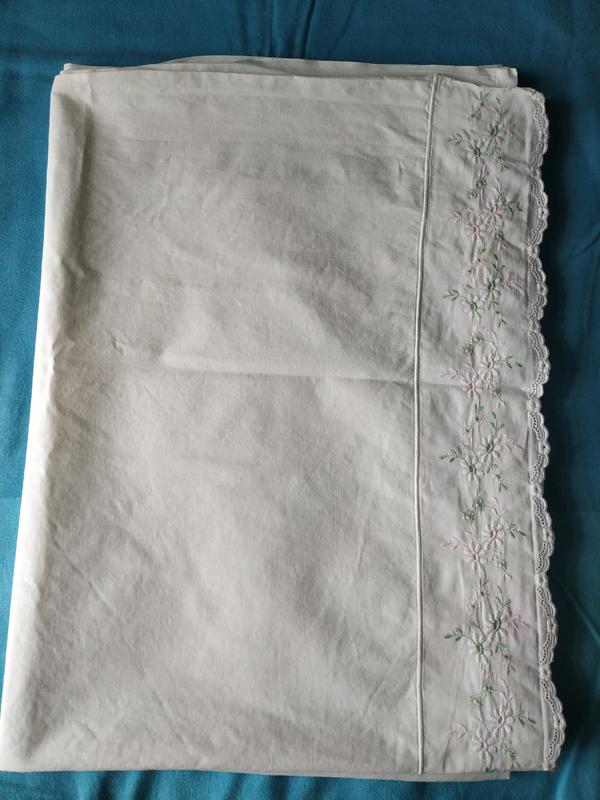 Якісна простирадло 84х122см.100%котон. З одного боку з вишивкою.