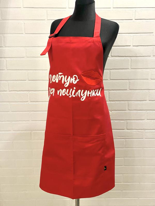 Матеріал Саржа плотна (65% поліестер, 35% бавовна) Розмір універсал , підійде на ріст до 170см. Лямка з регулюванням шиї На завʼязках Дві кишені