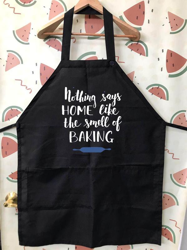 Фа000266 черный фартук с надписью "hothing says home life the smell of baking"