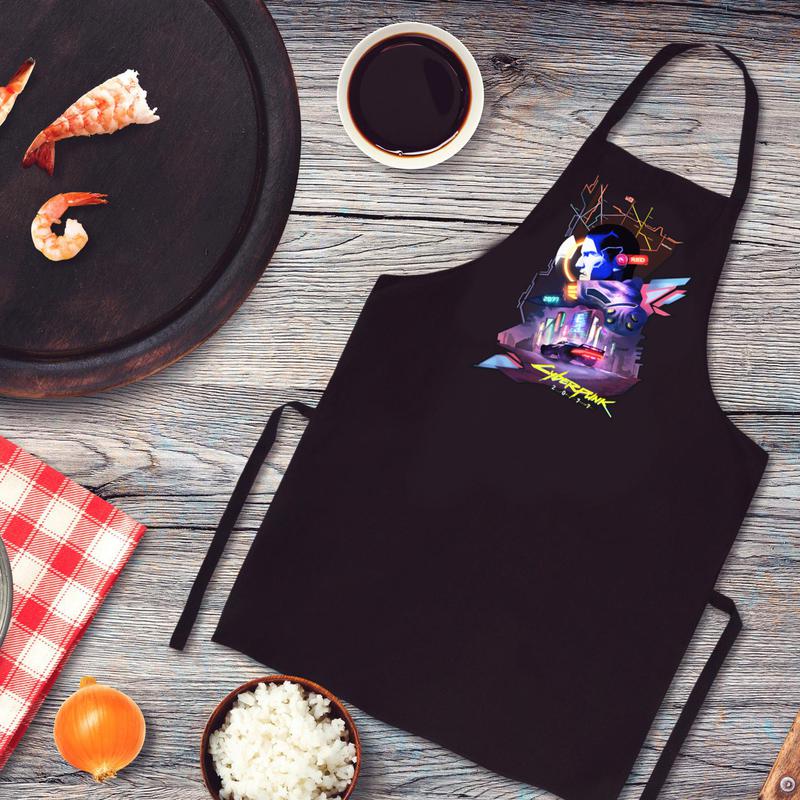 Фартук с принтом "Cyberpunk 2" Фартук габардиновый подходит как мужчинам так и женщинам. Имеет спереди три кармана, длинные завязки которые можно завязать как сзади так и спереди (70 см. каждая) Длина самого фартука (без учета завязки на шею) 84 см. Ширина фартука от завязки к завязке 68 см. Ширина лямки на шее 2 см. имеет 2 пуговки для регулировки лямки на шее. В наличии только черного цвета. Ткань - габардин. Габардин - синтетическое полотно, характеристики которого определяют его уникальность. Характерным признаком габардина является низкая степень свето- и влагопроницаемости, не сминаемость, отличная драпировка и то, что габардин просто замечательно держит форму. Ткань габардин очень удобна в своем использовании: полотно не прихотливо, а также очень простое в уходе за ним. Защищает одежду от загрязнений, легко стирается, хорошо сохраняет первоначальный вид.