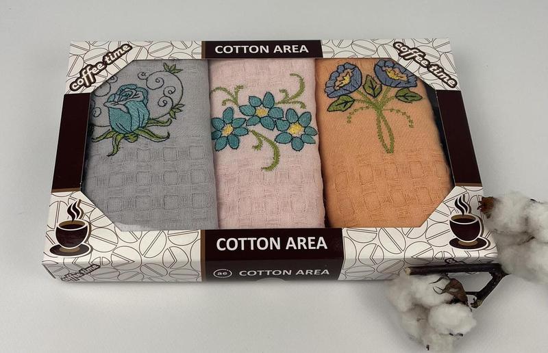 Набір вафельних рушників від турецького виробника. Виготовлені з 100% бавовни. Завдяки гарній гігроскопічності вафельні рушники здатні вбирати великий обсяг вологи. Перевага таких рушників у тому, що вони швидко сохнуть, не залишають розводів та ворсу. Вафельні рушники з вишивкою виглядають дуже оригінально! Прекрасний та практичний презент! Матеріал: Вафельне полотно. Розмір: 40х60см.(3 шт). Країна виробника: Туреччина.