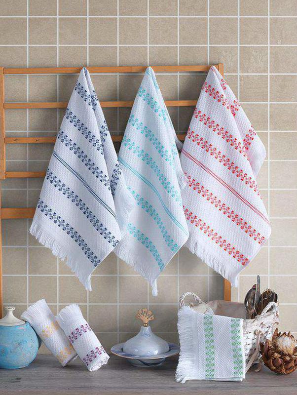 Представляем вашему вниманию полотенца турецкого производства, бренд Saheser для кухни. Детали Состав: 100% хлопок Размер: 40 х 60 см Плотность: 360 г/м2 Количество в упаковке: 6 шт. разного цвета Производитель: Турция Упаковка: силикон