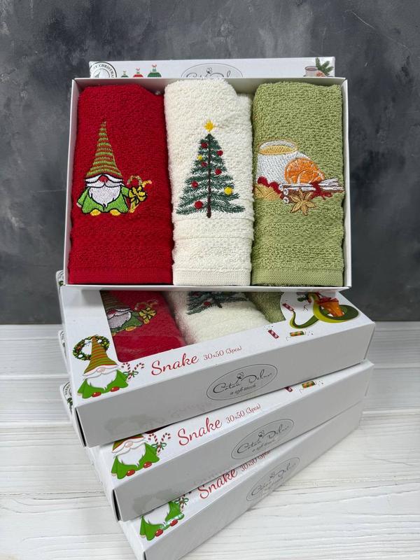 Набір рушничків з різдвяною вишивкою (3 шт) Створені для святкового настрою та тепла в домі. Упаковані стильно, готові для подарунку. Характеристики • Тканина: махра • Склад: 100% бавовна • Розмір: 30×50 см • Кількість: 3 шт • Виробник: Туреччина 🇹🇷