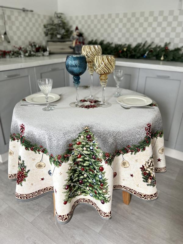 Скатерть праздничная новогодняя limaso ø140 см., круглая, гобелен