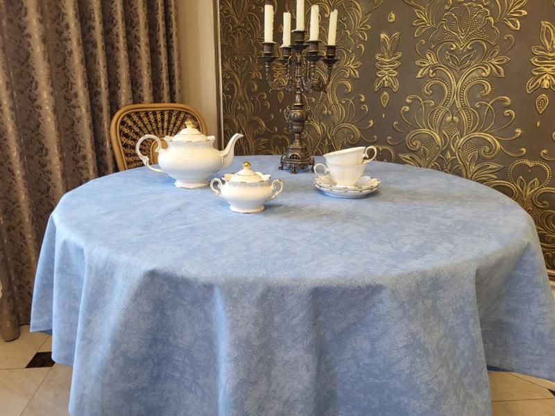 Скатерть мрамор голубой, круглая (диаметр 120см) діаметр 170см
