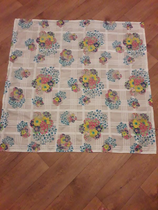 скатерть белая, асиметричная атласная клетка, пестрые цветы. 95 х 94 см Напероны – скатерти-коротышки, которые укладываются поверх основной скатерти. Они могут быть круглыми, прямоугольными и квадратными. Их размер, форма и материал зависят от вкусовых предпочтений ресторатора, моды на столовое белье, формы и размера столов. Есть несколько способов «укладки» наперона. Часто наперон кладут «на угол», по диагонали стола. Такой способ «укладки» характерен для квадратных столов и для наперонов очень активного цвета и рисунка. При диагональном размещении, свисы наперона и основной скатерти совпадают по длине. Не менее часто наперон ложится ровно на столешницу. При этом нужно тщательно следить за его свисом.