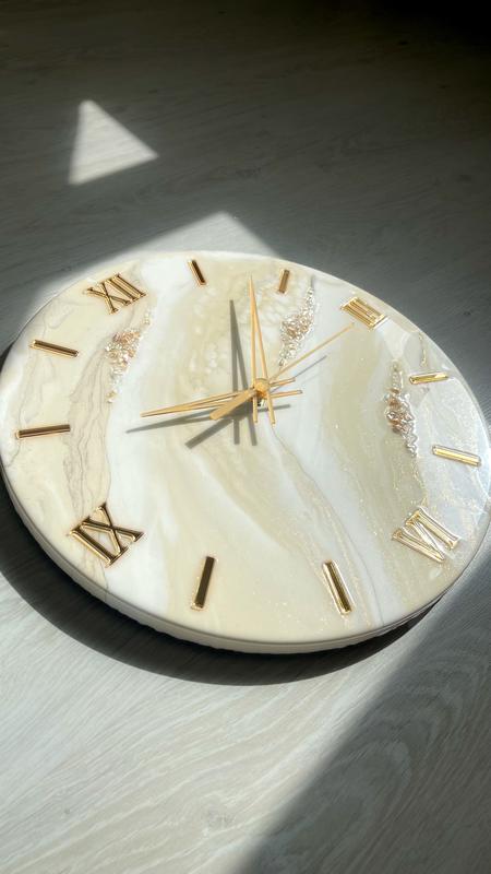 Часы настенные в нежном цвете . Слоновая кость, белый и с добавлениям золота . Размер можно от 30 см до 1 метра Тихий механизм Крепление к стене Можно сделать в другом цвете под ваш интерьер