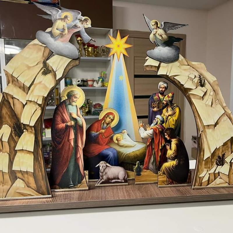 Рождественский Вертеп аналойный или настольный Размер: 70х60х20см. Материал: МДФ, латунные ножки Образы - литография с ламинацией Вертеп разборной.