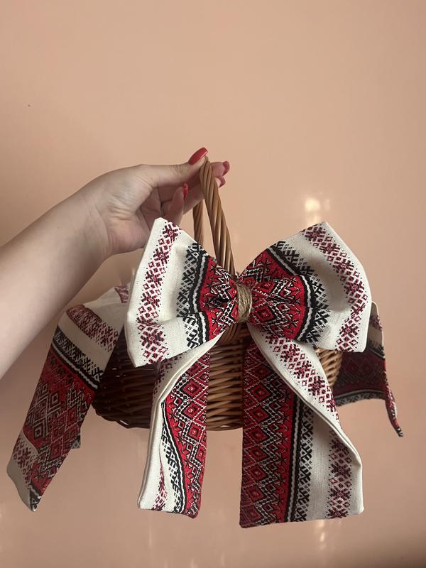 Рушник: 25 ширина 50 довжина Бантик: 22 довжина Ціна за набір (без кошика)