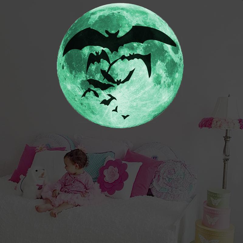 Наклейки на хэллоуин летучие мыши и луна 30 см салатовый
