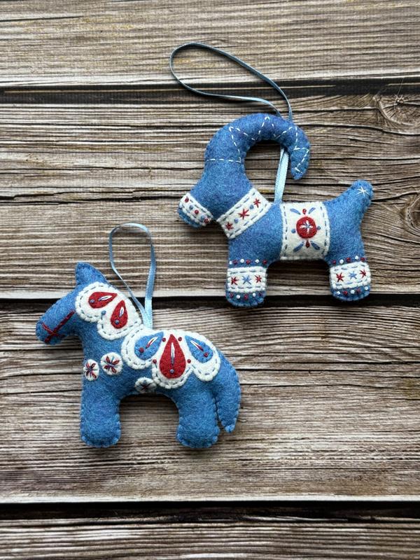 Набір іграшок підвісок з американського ( вовна+ віскоза) фетру. Ручна робота, ідентична вишивка з обох сторін. Наповнювач- холлофайбер, бавовняна нитка муліне. Козлик: ширина-9,5, висота-9,5 см, довжина петлі-11 см. Цей милий різдвяний козлик буде Вам оберегом, так як такий подарунок символізує побажання подолання усіляких труднощів та надаватиме власнику сил та енергії у щоденних справах.Він чудово буде дивитись і серед гілок новорічної ялинки, і на великодній гілочці, і в елегантній упаковці, очікуючи нового господаря із щирими побажаннями. Коник: ширина-10 см. висота-9 см, довжина петлі-6 см. Цей милий різдвяний коник ( із серії + різдв. синій козлик) буде Вашим оберегом у 2026 році.він є символом сили, волі, витривалості і руху вперед! Те, що нам потрібно! Створюйте Свій світ!