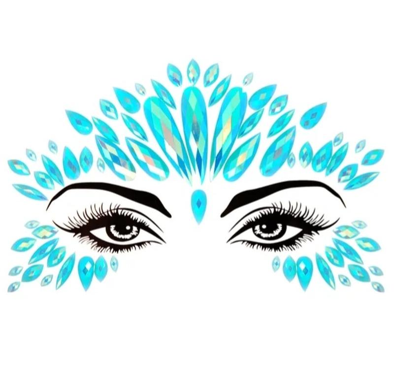 Наклейки на лицо стразы бирюзовые, подходит для детей и взрослых