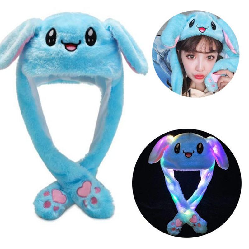 Карнавальная шапка с подсветкой: голубой зайчик с поднимающимися ушами
