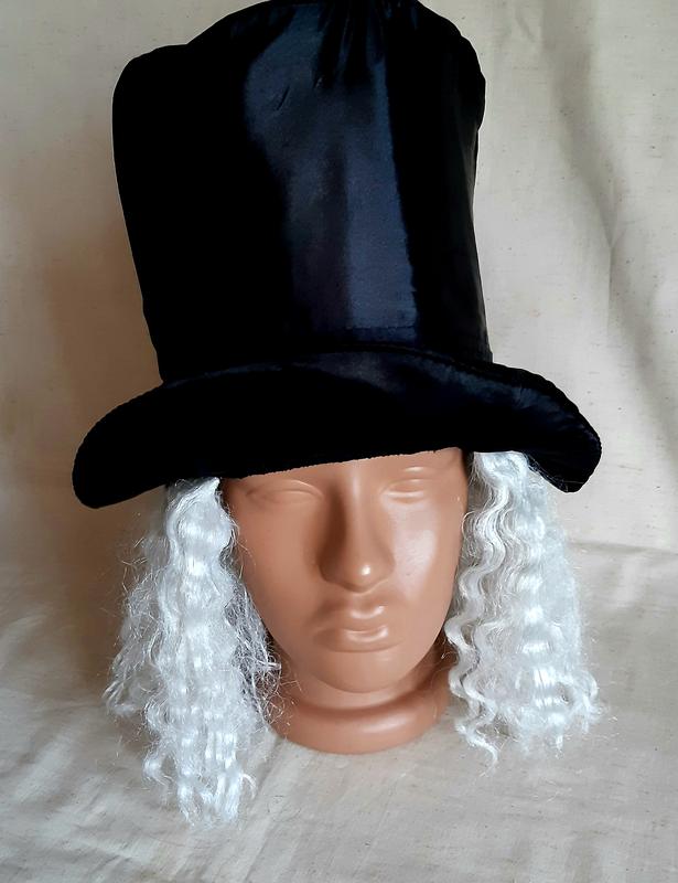 Карнавальная шляпа цилиндр атласная на поролоне с белыми искусственными волосами размер универсальный подойдет на обхват головы 54-57см ЗАМЕРЫ полуобхват 58см, высота 19,5см 92