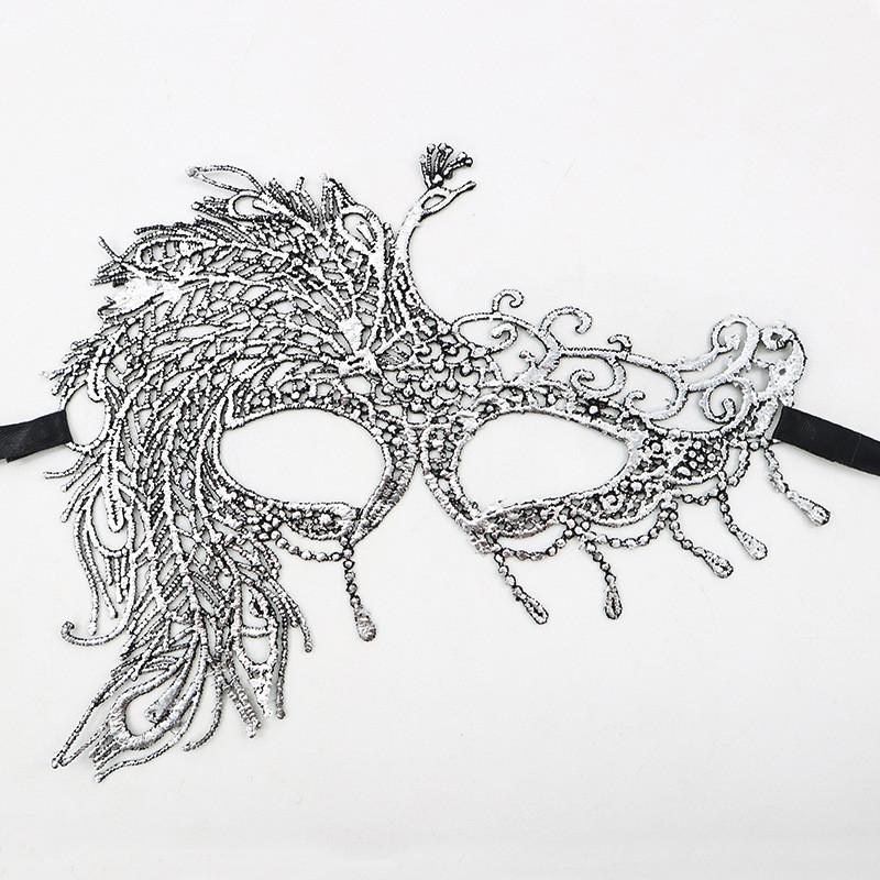 Карнавальная маска Павлин. Размер: 20 на 14 см. Цвет: серебристый. Материал: кружево. Маска на лицо для всех видов вечеринок. Вы будете выглядеть очень таинственно. Также подходит маска для Хэллоуина.