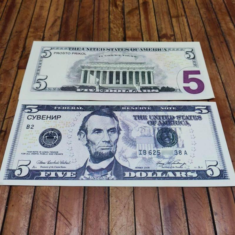 Сувенирные Купюры 5 долларов нового образца 80 шт/уп, пачка баксов Сувенирные банкноты – почти как настоящие деньги. В пачке 80 купюр. Размер, цвет, рисунок на шуточных деньгах совпадает с оригиналом, однако когда вы их возьмете в руки, то сразу поймете, что деньги - прикол, а не настоящие. Конечно же нет никаких водяных знаков, защиты, простая бумага и на всех сувенирных купюрах стоит надпись "Сувенир" и "Прикол". Отличаются от реальных купюр и разрешены к продаже. Оригинальное оформление дней рождений, свадьбы, корпоративов. Внушительный сувенир, позволяющий почувствовать себя миллионером всего за несколько гривен. Имея на руках такую фантастическую сумму пусть сувенирных , но все же денег, можно придумать массу интересных игр, конкурсов, приколов. У вас есть уникальная возможность не просто пожелать юбиляру несметных богатств, но и буквально осыпать его сувенирными долларами с головы до ног. Неплохо будет смотреться кейс с баксами, правда для этого вам придется купить сувенирные доллары оптом , в дипломат их поместится много, но при этом вы получите существенную скидку и все гости выстроятся в очередь, чтобы сфотографироваться со своей мечтой.