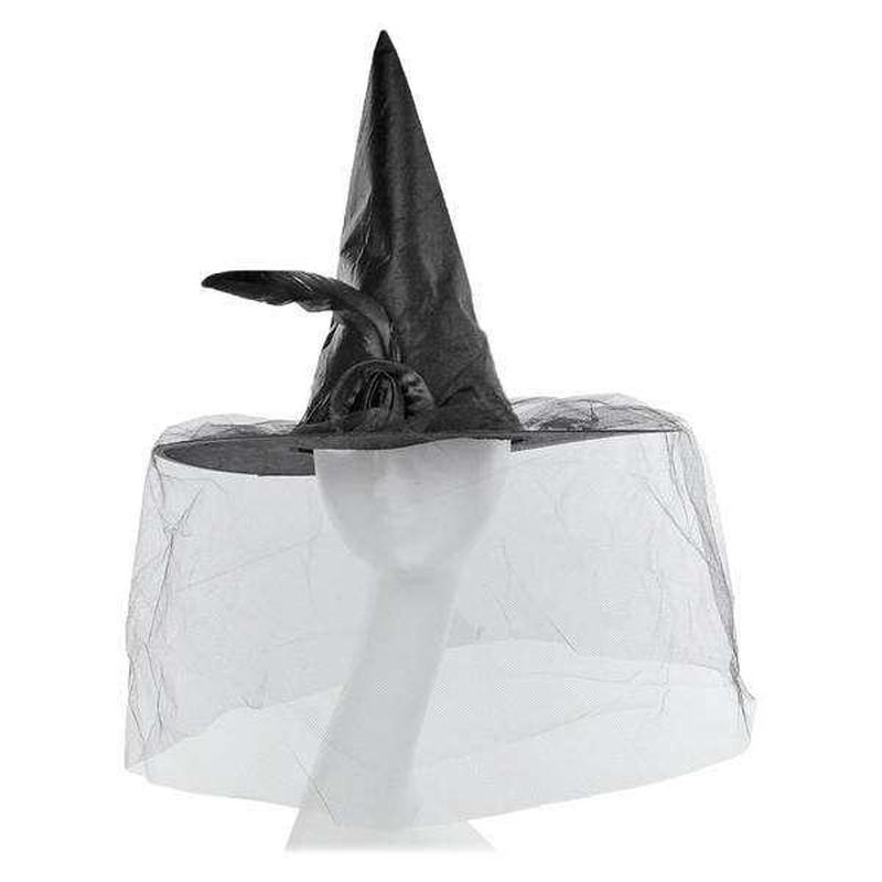 Колпак "Колдунья с розой, пером и вуал ью" 12-5BLK Яркий, стильный карнавальный колпак - аксессуар для создания образа гламурной колдуньи или ведьмочки (ведьма, ведьмочка). Высота — 35 см, диаметр — 41 см. Длина спадающей вуали - 20 см