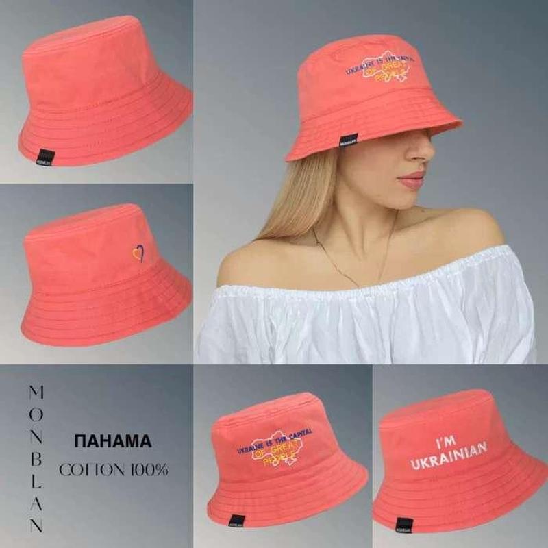 Панама патриотическая хлопковая с принтом кораллового цвета 678000 Купить Панама патриотическая хлопковая с принтом на выбор – флаг Украины, I’m Ukrainian, Ukraine is the capital of great people, Сердце в патриотичных цветах, Доброго вечера – ми з України. В наличии полный ассортимент в любом количестве! Представлены в самых различных цветах: белые, бежевые, светлобежевые, бирюзовые, голубые, жёлтые, коралловые, красные, ментоловые, мятные, оранжевые, пудровые, розовые, серые, чёрные и другие. Есть в продаже несколько видов двусторонних панам с украинской символикой. Универсальнй размер!