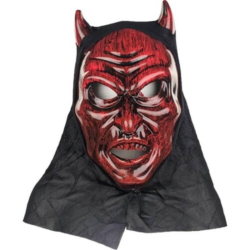 Маска с капюшоном "ДЬЯВОЛ" 13-421. Страшная маска для образа Демона. Материал Маска ― Пластик Капюшон ― Синтетическая ткань Цвет Маска ― Красная Капюшон ― Чёрный