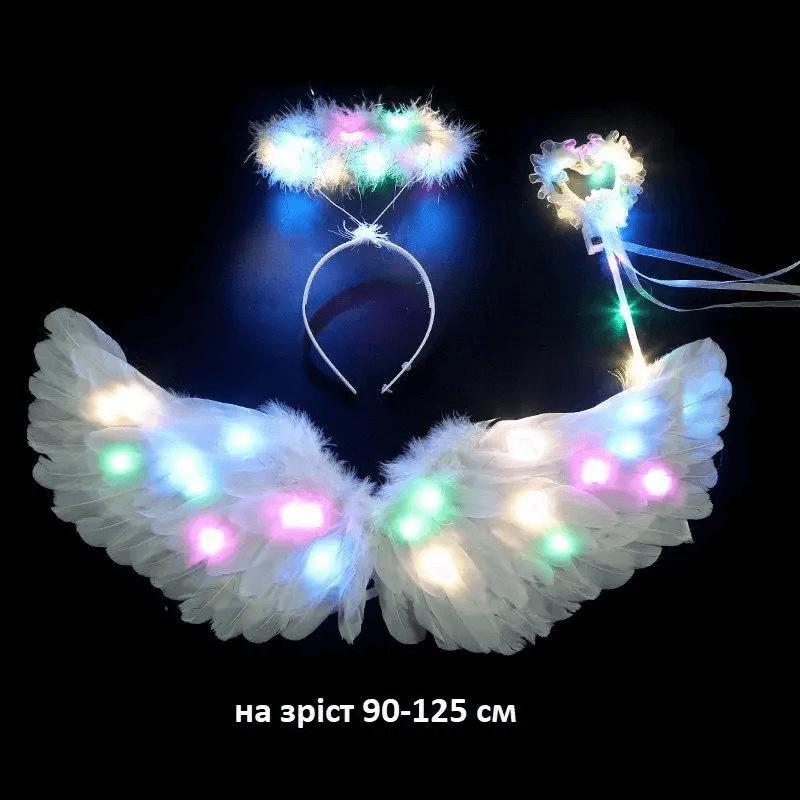 Крылья светящиеся белые в комплекте с нимбом и палочкой