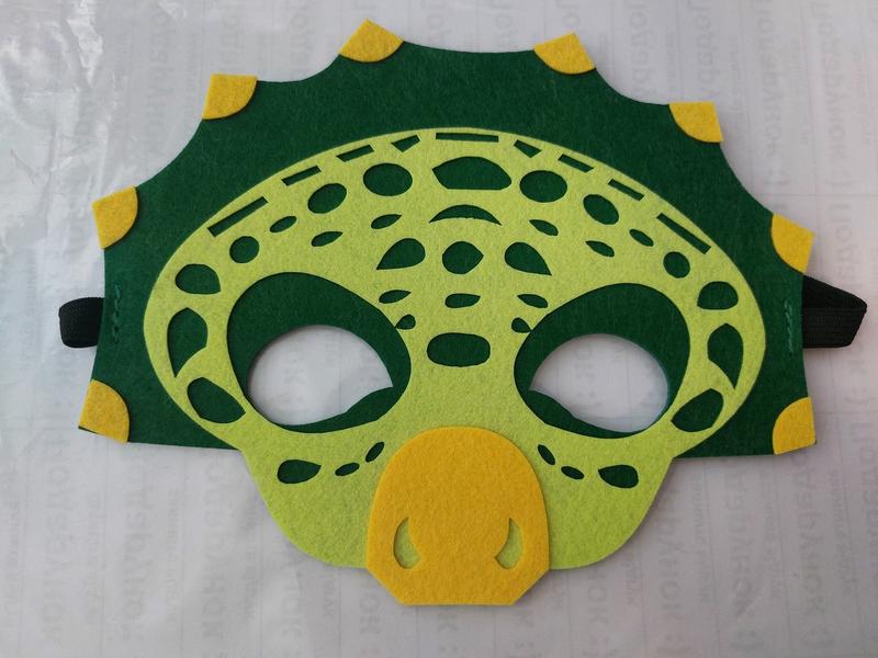 Маска динозавр. Размер: 15*18см. Цвет: зелено-желтый. Материал: фетр.