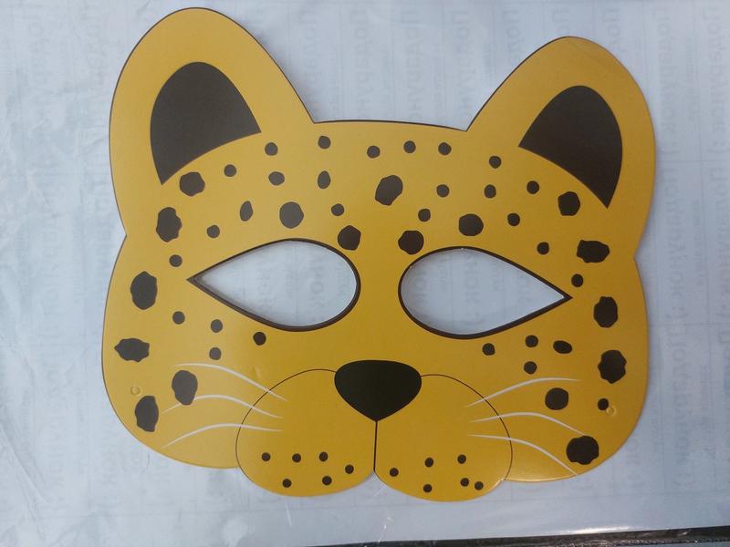 Маска Гепард. Размер: 20 на 16 см. Цвет: желтый. Материал: картон.