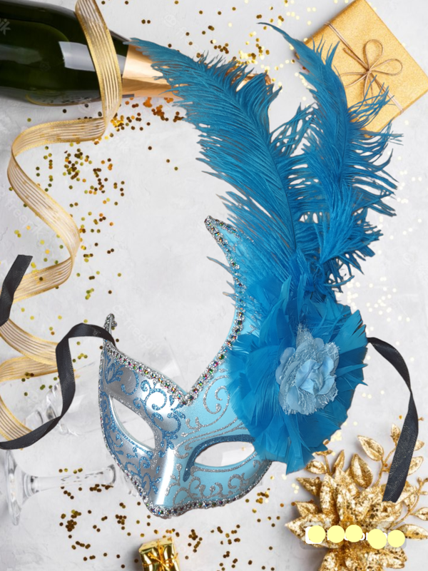Венецианская маска боакитно-серебристого ульора с длинными перьями, и перьевой цветком. Ширина маски 26 см Высота маски 21 см,а с перьями 44 см (Длина перьям 38 см,ширина 10см-12см).