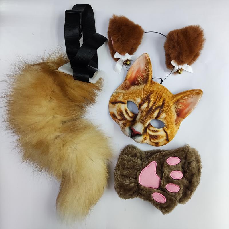Цей набір створений спеціально для занять квадробікою. В нього входять: хвіст з ремінцем, пухнасті вушка, рукавички та маска. Матеріали якісні та прості у догляді. Маска має міцну пластикову основу та резинку з регулюванням довжини. Вушка кріпляться на металевий обруч, зручні та не натирають при носінні. Рукавички мають плетений шнур, щоб скріпити їх разом і не загубити. Хвіст гнучкий і ви можете направити його у будь-який бік, а також зручно кріпиться до пояса чи одягу.