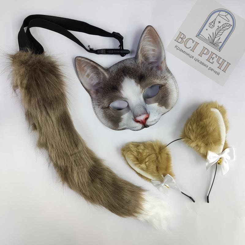 Набір для квадробіки (маска 3д, хвіст на ремінці, вушка) костюм котика