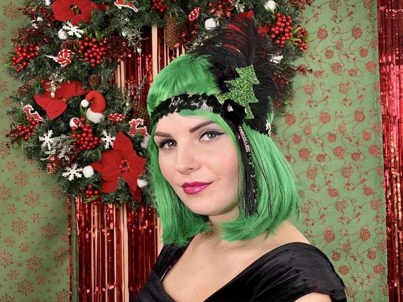 Основной аксессуар для женского карнавального ретро образа. Резинка покрыта пластиковыми пайетками, декорирована ёлочкой shine. Стильный аксессуар для новогоней вечеринки. Ширина резинки - 3 см (растягивается). Высота пера - до 20 см.