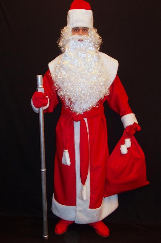 Костюм Св.Николая/Д.Мороза ПЕРВОЗДАННЫЙ КРАСНЫЙ-5 р-р 50-56 Код 107815 Комплект-костюм Деда Мороза «ПЕРВОЗДАННЫЙ-5» в наличии в одном универсальном размере: 50-56 на рост 175-195 см В комплект костюма входит: 1. Шуба Деда Мороза на шёлковой подкладке из ярко-красной износоустойчивой полусинтетической ткани типа саржевого уплотненного габардина, отороченная белым искусственным мехом-мутоном по подолу и линии застежки, а также на рукавах. Шуба укомплектована очень большим шалевым воротником их искусственного белого меха-мутона с декором из орнаментальной серебристой объёмной тесьмы на полках шубы. 2. Шапка на шёлковой подкладке, из ярко-красной износоустойчивой полусинтетической ткани типа саржевого уплотненного габардина, отороченная белым мехом-мутоном 3. Длинный пояс-кушак (180 см) из ярко-красной износоустойчивой полусинтетической ткани типа саржевого уплотненного габардина, отороченный эффектными опушками на концах пояса из белого искусственного меха-мутона. 4. Рукавицы из ярко-красной износоустойчивой полусинтетической ткани типа саржевого уплотненного габардина. 5. Реалистичная большая борода «ЗНАТНАЯ» (55 см, 125 гр.) Код 02716.Реалистичный вьющийся парик «Декабрьский». Код 01702. Вес – 120 грамм 6. Вместительный мешок для подарков красного цвета «ФАРТОВЫЙ» (48х75 см) с меховыми бубонами на завязках. Код 12030. В комплект костюма Деда Мороза «ПЕРВОЗДАННЫЙ КРАСНЫЙ-5» НЕ ВХОДЯТ (можно приобрести на нашем сайте дополнительно): - Посох Деда Мороза (можно выбрать любой по размеру, длине, типу верхушки, цвету и материалу изготовления, конструкции (сборный или цельный) и цене посох Деда Мороза с учётом вашего вкуса и потребностей). - Сапоги или валенки Деда Мороза (можно купить дополнительно на нашем сайте) различные по технологии изготовления, материалу, высоте голенища, цене - сапоги или валенки Деда Мороза. - Брюки (штаны, шаровары) Деда Мороза (можно купить дополнительно на нашем сайте). Есть все размеры брюк, на любой рост. Цвета – красный, синий, бордовый. - Микрофон портативный с усилителем и динамиком и модератором-изменителем голоса.