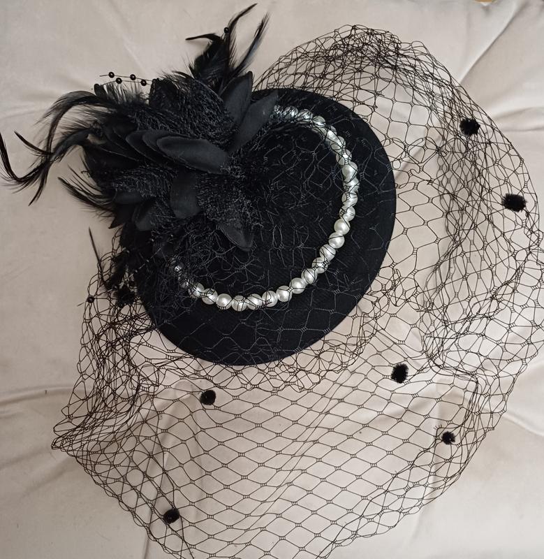 Красивый небольшой шляпка-таблетка в ретро стиле с вуалью для создания романтичного образа. Идеален для тематических вечеринок, корпоративов и фотосессий. Размер 15,5 ×13