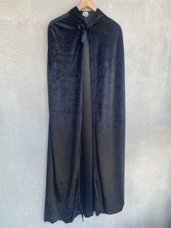 Чорна оксамитова довга мантія, накидка с капюшоном плащ карнавальний костюм, театр, коспле...