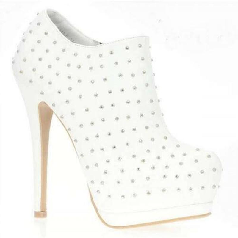Сапожки-ботинки (р-р 38) ИНКРУСТИРОВАННЫЙ СНЕГ. Код товара 16011 Сапожки-ботинки «Инкрустированный снег» изготовлены из высококачественной эко- кожи. Женственные, элегантные, нарядные – мечта! Имеют чистый белый цвет. По верху инкрустированы хромово-серебристым металлическим декором – смотрится изящно и необычно. Подойдут абсолютно под любой цвет костюма – синий, голубой, белый. смешанный (белый цвет, как известно, универсален). Надёжные и прочные. Можно использовать и для других. кроме театральных, целей: – сапожки - ботинки «Инкрустированный сне г» отвечают всем требованиям нормальной женской обуви. Прекрасно смотрятся на ноге, за счет высокого каблука заметно и существенно увеличивают рост, стройнят. Каблук – высокий, по высоте - 13,5 см. Платформа сапожек – 2,5 см. Размер: 38