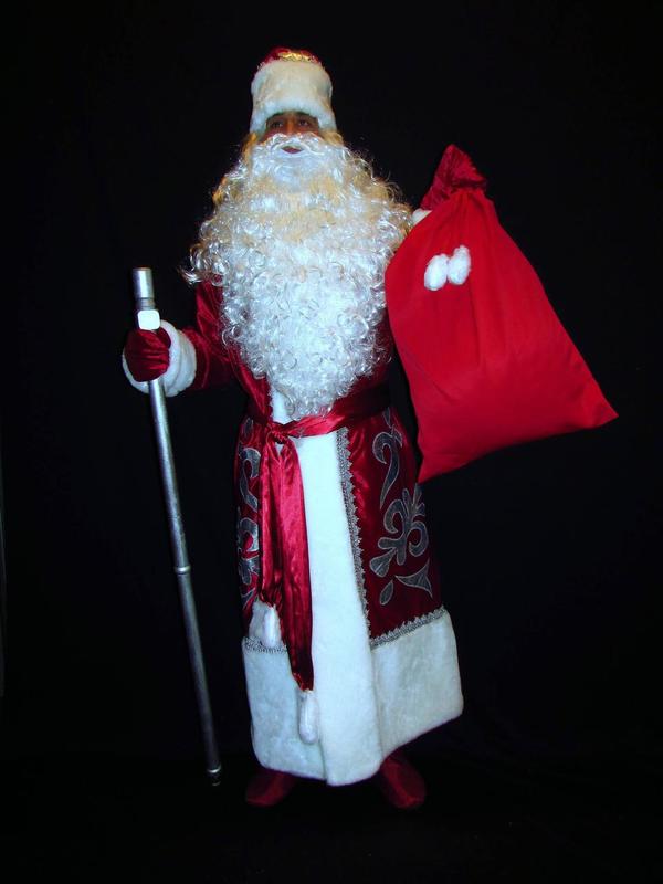 Костюм Св.Николая/Д.Мороза ЭЛИТНЫЙ БОРДО-6 р-р 48-54. Код 107746 Комплект-костюм Деда Мороза «ЭЛИТНЫЙ БОРДО-6» отшивается по заказу на нужный Вам размер и рост в течении 7-10 дней после оформления заказа. В постоянном наличии у нас эта модель костюма есть в универсальном размере – 48-54 на рост 175-190 см В комплект костюма входит: 1. Шуба Деда Мороза на подкладке из ВИШНЁВО-БОРДОВОГО ПЛОТНОГО СТРЕЙЧ-БАРХАТА, с блестящими эффектными аппликациями (на полках шубы и сзади – внизу на спинке), отороченная белым мехом-мутоном, с дополнительным декором из орнаментальной серебристой объёмной тесьмы на полках шубы. 2. Шапка на подкладке, из ВИШНЁВО-БОРДОВОГО ПЛОТНОГО СТРЕЙЧ-БАРХАТА, украшенная серебристыми аппликациями из блестящего бифлекса и отороченная отбеленным мехом-мутоном. 3. Эффектный широкий пояс-кушак из ВИШНЁВО-БОРДОВОГО ПЛОТНОГО СТРЕЙЧ-БАРХАТА. 4. Рукавицы на подкладке, из ВИШНЁВО-БОРДОВОГО ПЛОТНОГО СТРЕЙЧ-БАРХАТА, украшенные серебристыми аппликациями из блестящего бифлекса и отороченные отбеленным мехом-мутоном. 5. Вместительный мешок для подарков «ФАРТОВЫЙ» (48х75 см) с меховыми бубонами на завязках. Код 12030 6. Прекрасная пушистая, реалистичная и большая борода «РЕАЛЬНАЯ» (60 см, 140 гр.) Код 02707 7. Великолепный длинный парик «Белый снег» под стать бороде. Код 01704. Длина 55-65 см, вес 145-150 грамм) В комплект костюма Деда Мороза «ЭЛИТНЫЙ БОРДО-6» НЕ ВХОДЯТ (можно приобрести на нашем сайте дополнительно): - Посох Деда Мороза (можно выбрать любой по размеру, длине, типу верхушки, цвету и материалу изготовления, конструкции (сборный или цельный) и цене посох Деда Мороза с учётом вашего вкуса и потребностей). - Сапоги или валенки Деда Мороза (можно купить дополнительно на нашем сайте) различные по технологии изготовления, материалу, высоте голенища, цене - сапоги или валенки Деда Мороза. - Брюки Деда Мороза (можно купить дополнительно на нашем сайте). Есть все размеры брюк, на любой рост. Цвета – красный, синий, бордовый. - Микрофон портативный с усилителем и динамиком и модератором-изменителем голоса.