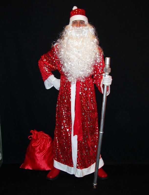 Костюм Св.Николая/Д.Мороза СНЕЖНЫЕ БЛЕСТКИ-5 р-р 48-52 Код 107825 Костюм в одном размере. Подходит на 48-52 размеры и на рост 170-185 см Комплект-костюм Деда Мороза «СНЕЖНЫЕ БЛЁСТКИ-5» один из самых эффектны и потому - популярных комплект-костюмов в ярко-красно-алой цветовой гамме! Ежегодно таких костюмов у нас покупают более 100 комплектов! В комплект костюма входит: 1. Шуба Деда Мороза с эффектными блестками в форме звёздочек и ёлочек 2. Пояс из основной велюровой ткани, украшенный зеркальными блёстками (принт) 3. Шапка-колпак, украшенная зеркальными блёстками (принт) с бубоном 4. Реалистичная достойная внимания 5. Борода Деда Мороза «ЗНАТНАЯ» Код 02716. Длина – 55 см., вес – 125 грамм 6. Великолепный длинный парик «Белый снег» под стать бороде. Код 01704. Длина 55-65 см, вес 145-150 грамм) 7. Большой мешок для подарков из красного атласа с завязками. Код 12017. Размер 50х75 см 8. Перчатки белые (случайный выбор) В комплект костюма Деда Мороза «СНЕЖНЫЕ БЛЁСТКИ-5» НЕ ВХОДЯТ (можно приобрести на нашем сайте дополнительно): - Посох Деда Мороза (можно выбрать любой по размеру, длине, типу верхушки, цвету и материалу изготовления, конструкции (сборный или цельный) и цене посох Деда Мороза с учётом вашего вкуса и потребностей). - Сапоги или валенки Деда Мороза (можно купить дополнительно на нашем сайте) различные по технологии изготовления, материалу, высоте голенища, цене. - Брюки Деда Мороза (можно купить дополнительно на нашем сайте). Есть все размеры брюк, на любой рост. Цвета – красный, синий, бордовый. - Микрофон портативный с усилителем и динамиком и модератором-изменителем голоса.