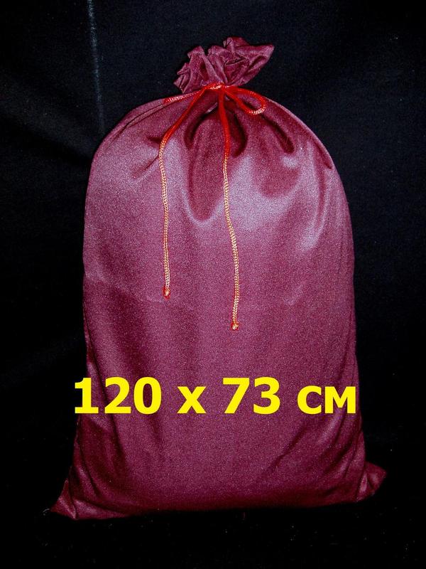 Мешок Св.Николая/Деда Мороза/Санты (73х120 см) ОГРОМНЫЙ БОРДОВЫЙ с цветным шнуром . Код 12105 Представляем "ОГРОМНЫЙ" подарочный мешок насыщенного Бордового оттенка (120 x 73 см), оснащенный яркими разноцветными завязками. Изготовлен из высококачественной смеси полусинтетических волокон (чрезвычайно прочной и плотной ткани) глубокого бордово-вишневого цвета тона "ПЕРЕСПЕЛАЯ ВИШНЯ". Благодаря своей качественной полусинтетической структуре, ткань мешка легко поддается стирке, почти не мнется, обеспечивая ему всегда аккуратный и свежий вид. Толстые завязки мешка – контрастный и яркий акцент: эффектный плетеный шнур длиной около 80-90 см, рассчитанный на формирование красивого узла для фиксации подарков. При этом сохраняется достаточная длина свободных концов, элегантно свисающих и украшающих мешок вместе с завязанным узлом. Завязочный шнур сохраняет свой цвет во время стирки и не дает усадки. Мешок прошит надежными армированными нитями, гарантирующими его долговечность и позволяющими наполнять его даже тяжелыми подарками, не беспокоясь о разрывах швов в неподходящий момент. Объективные характеристики и размеры мешка: • ВЫСОТА – 120 см • ШИРИНА – 73 см • ЦВЕТ – БОРДОВО-ВИШНЕВЫЙ (ПЕРЕПЕЛАЯ ВИШНЯ) Размеры мешка тщательно продуманы и идеально подходят для корпоративных мероприятий, детских праздников в садах, массовых торжеств, а также для больших по габаритам подарков. Назначение и область использования подарочного мешка: Этот праздничный мешок гармонично дополнит любой костюм, выполненный в КРАСНОЙ, БОРДОВОЙ и БЕЛОЙ палитре, или наряды, где эти цвета удачно сочетаются. Важно, чтобы размер мешка отвечал вашим потребностям, размерам подарков и их количеству. Если есть сомнения в емкости мешка, советуем выбрать больший вариант. На нашем сайте представлен широкий ассортимент мешков разных цветов и размеров, так что вы легко найдете идеальный вариант. Оцените, нужен ли вам этот мешок: Мы рекомендуем этот аксессуар для следующих категорий покупателей: • Тем, кто нуждается в замене утраченного мешка для завершения карнавального образа. • Тем, чей мешок износился и потерял привлекательный вид. Со старым мешком не стоит хранить новые подарки! • Тем, у кого существующий мешок неудобен из-за коротких или плохо завязываемых завязок. • Тем, чей мешок слишком мал. Большой мешок – это удобство в транспортировке и размещении подарков, а также ощущение загадочности! • Тем, кто просто хочет обновить старый мешок. • Тем, кто приобрел костюм без мешка и нуждается в полной комплектации.