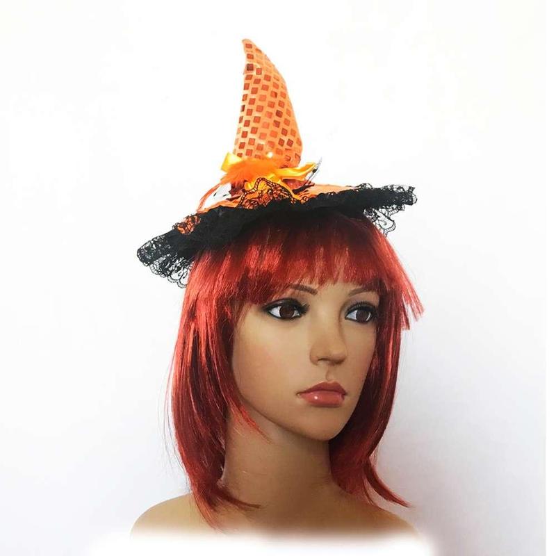 Шляпка на ободке ведьмочки с кружевом (оранжевая)
