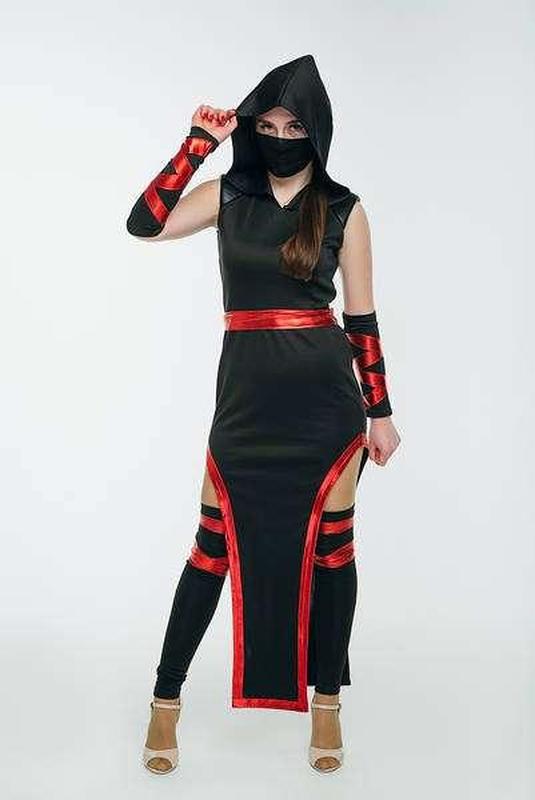 КОСТЮМ НИНДЗИ ДЛЯ ДЕВУШКИ ВЖ321 Состав: платье, гетры, перчатки, маска, пояс Ткань: трикотаж, бифлекс Размер универсальный - 44-48 - идеально, 42 и 50 - компромиссно.