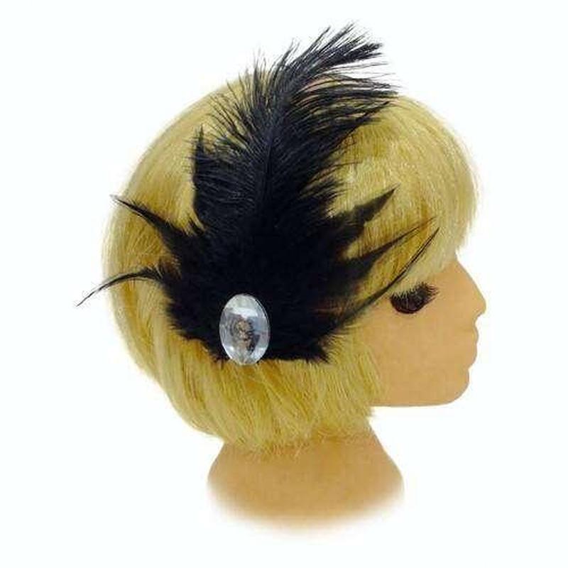 Черная заколка с чёрными перьями и камнем на гангстерскую вечеринку.