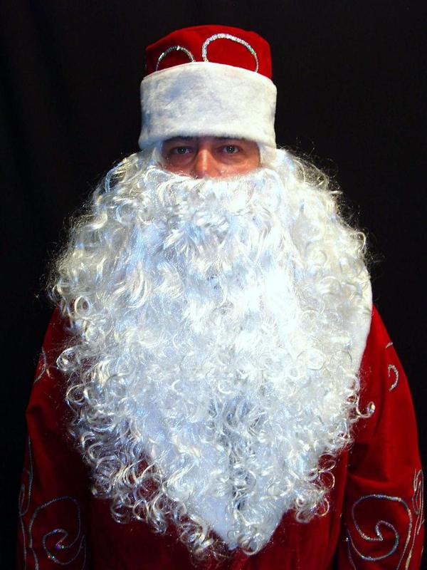 Борода 52 см 90 г + парик 65 см 150 г белые Св. Николая/Санта Клауса/Деда Мороза/старца/колдуна - Комплект № 37 СЛАВЯНСКИЙ. Код 03735 Комплект № 37 СЛАВЯНСКИЙ, в который входят борода и парик, состоит из: 1. Качественной реалистичной бороды «ГЕРЦОГСКАЯ» (50-52 см, 80-90 гр.). Борода «ГЕРЦСКАЯ» – отличная реалистичная борода, достаточной длинны и веса (50-52 см, 80-90 гр.), вполне приличного размера. Она добротная, пышная, полупрофессиональная. Качественные синтетические нити-волокна обеспечивают белизну и свежесть бороды. Имеется прорезь для рта, которую можно расширить – подрезать, увеличить, подогнав под свои личные анатомические особенности губ, рта и потребности для достижения максимального удобства, что значительно увеличивает комфорт и подвижность актера, использующего эту бороду. 2. Отличного реалистического мужского парика «БЕЛЫЙ СНЕГ» (длина – 65 см, вес - 150 грамм). Парик «Белый снег» - высококачественный парик с добавлением КАНЕКАЛОНА для профессиональных и продвинутых любителей. Общий вес комплекта 230-240 грамм