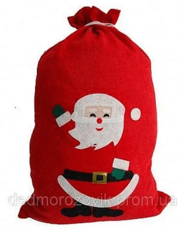Мешок св. николая/деда мороза/санта клауса (68*50). красный с аппликацией