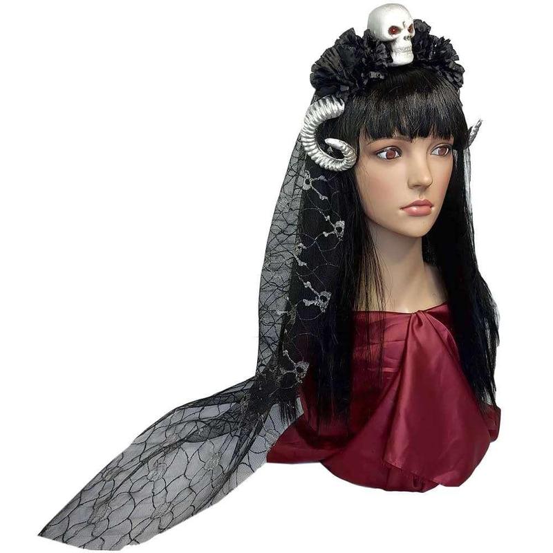 Украшение на голову Хэллоуин с рогами Лугата 10239 HA1-0239 Размеры: 21х20х6.5см, размер рога 23х2.5х2см, длина фаты 85см Цвет: красный с черным, рог черный Материал: искусственные цветы, гипюр, пластик Украшение на голову Хэллоуин с рогами Лугата 10239 легко можно создать оригинальный образ. Ободок с цветами и черепом в стиле Santa Muerte на Halloween, эффектно дополнит любой костюм нечести. Эффектное сочетание черных хризантем и белого черепа с маленькими золотыми рогами демона дополненое черной фатой из гипюра, создает загадочный образ Хельи Королевы Мертвых. Предлагаем Вам большой выбор украшений на голову для составления неповторимого образа на День Мертвых в интернет - магазине Билли Бонс. Купив Украшение на голову Хэллоуин Вы получаете не только качественный товар, а и 100% позитивных впечатлений от приобретения. Помимо аксессуара для волос, конечно, желателен оригинальный костюм, а также специфический гримм, который Вы можете подобрать на нашем сайте.
