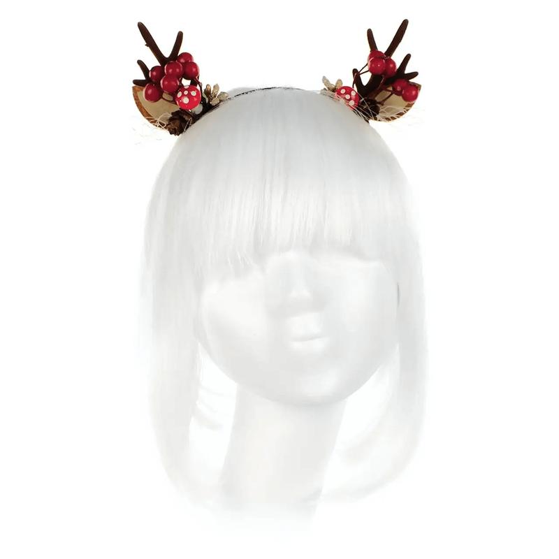 Обруч Олень с ягодами 19-307BR Карнавальный аксессуар на Новый год - рога оленя с ягодами, цветами, шишкой, грибом-мухомором. Обруч — безразмерный Высота рогов — 7,5 см.
