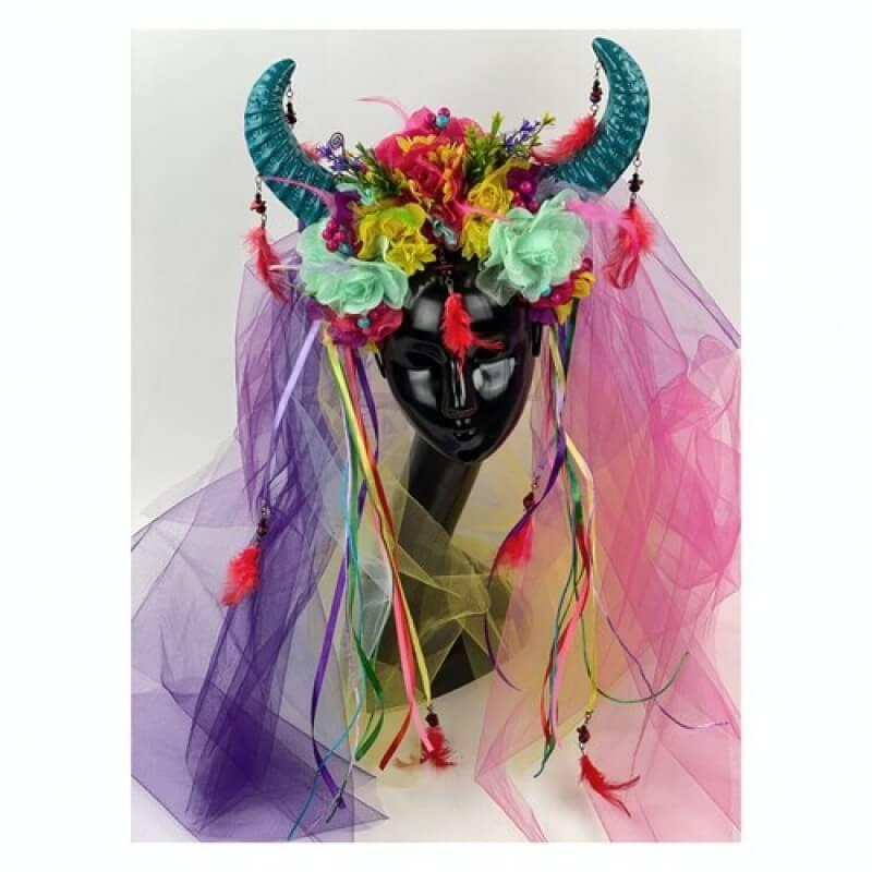 Обруч New Фея Rainbow с фатой 18-952-1 ## Материал: синтетическая ткань, пенофол, пластик Описание: Высота рога – 18,5 см. Длина фаты – 100 см. Необычный мифический образ для вечеринки в таинственном саду (Secret Garden Party) подойдет для карнавальных костюмов: эльф, нимфа, фея и др.