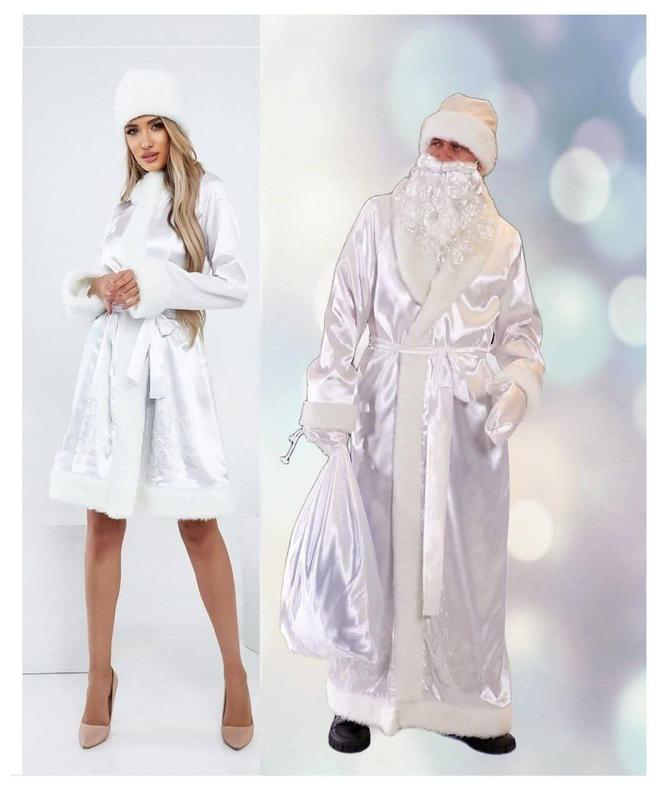 Костюмы св.николая/д.мороза и снегурочки атласные белые р-р универсальный